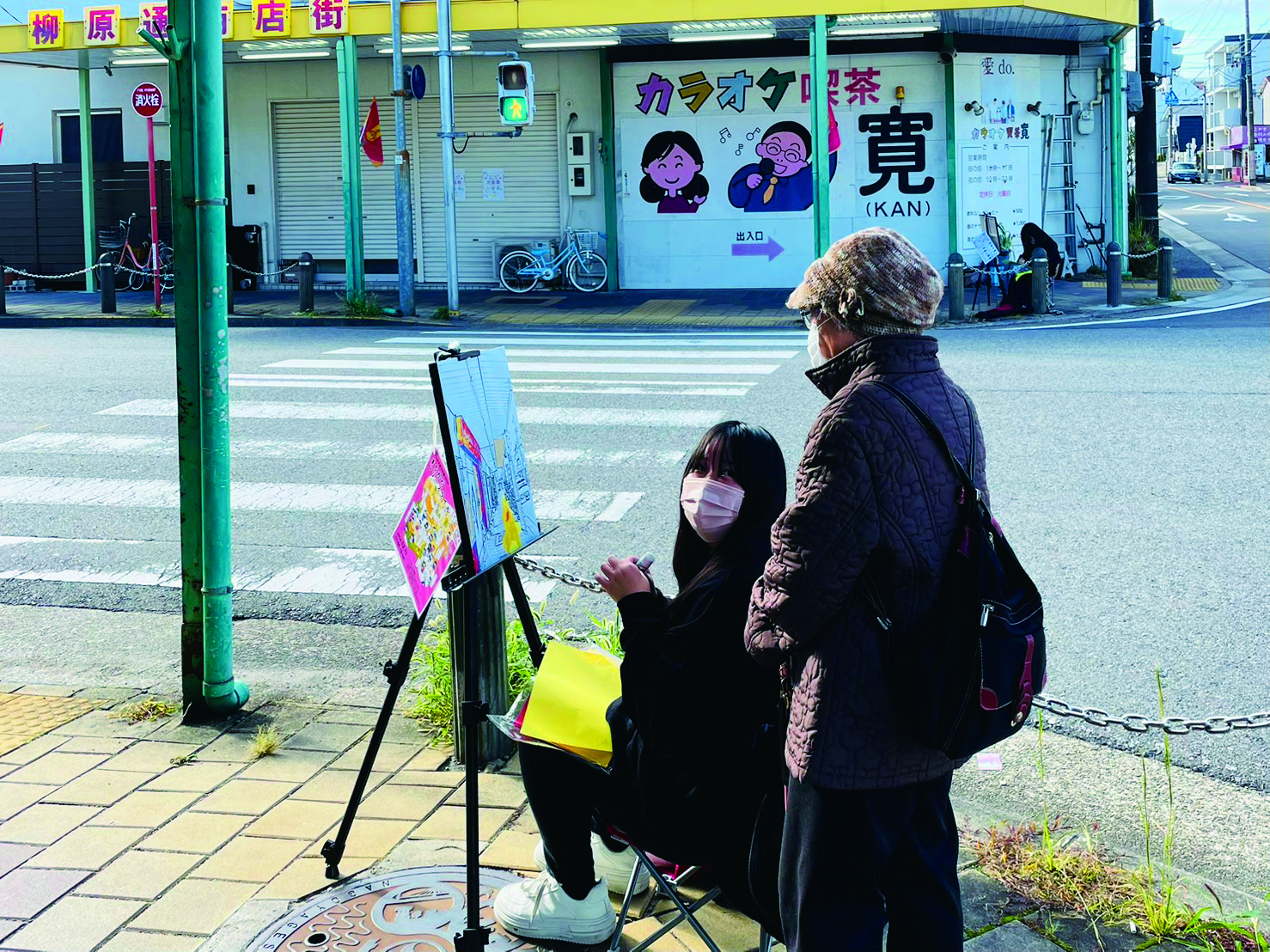 北高校美術部が、柳原通商店街の風景を貼絵でスケッチします!